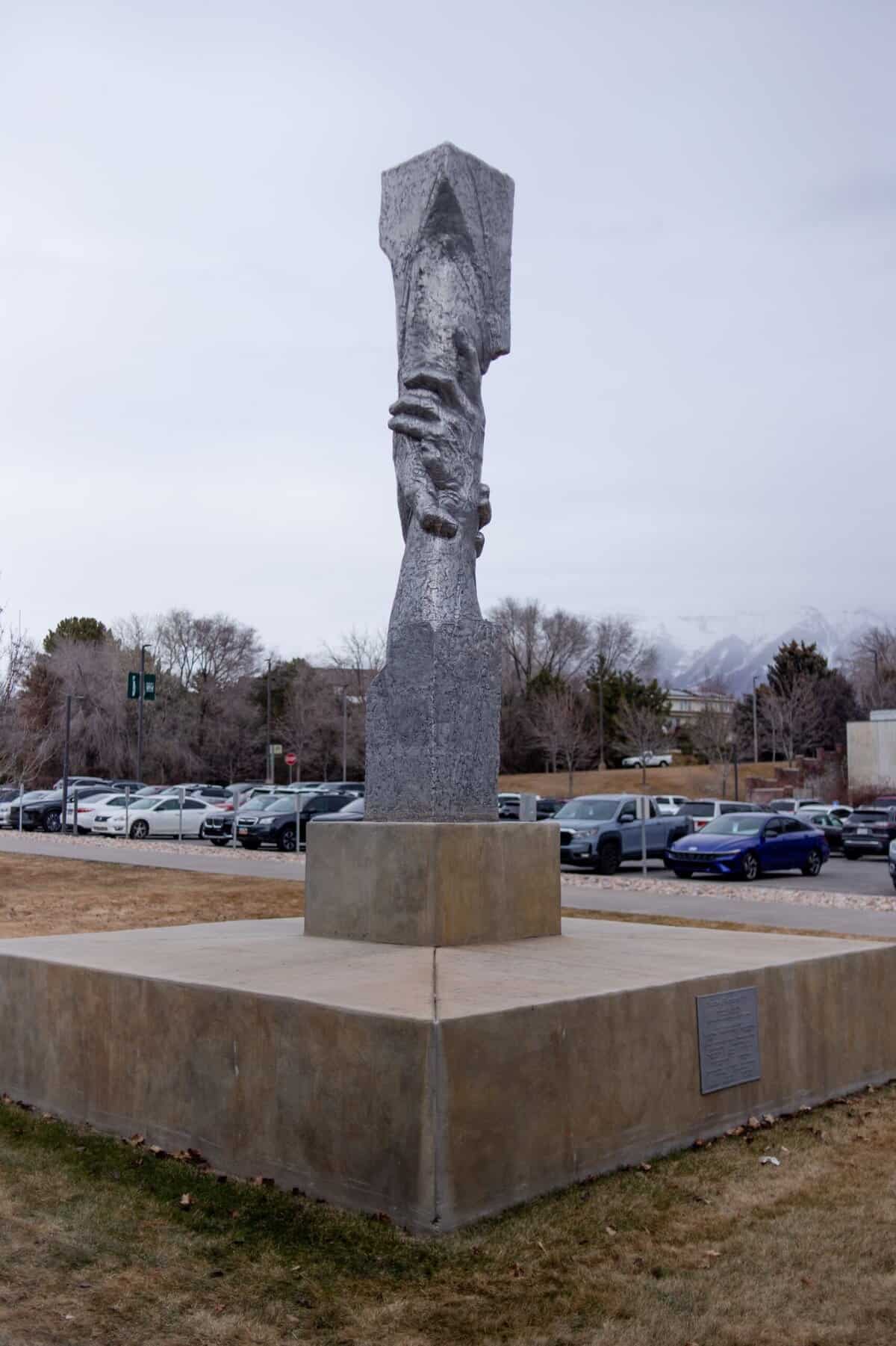 Statue of two hands clasping each other