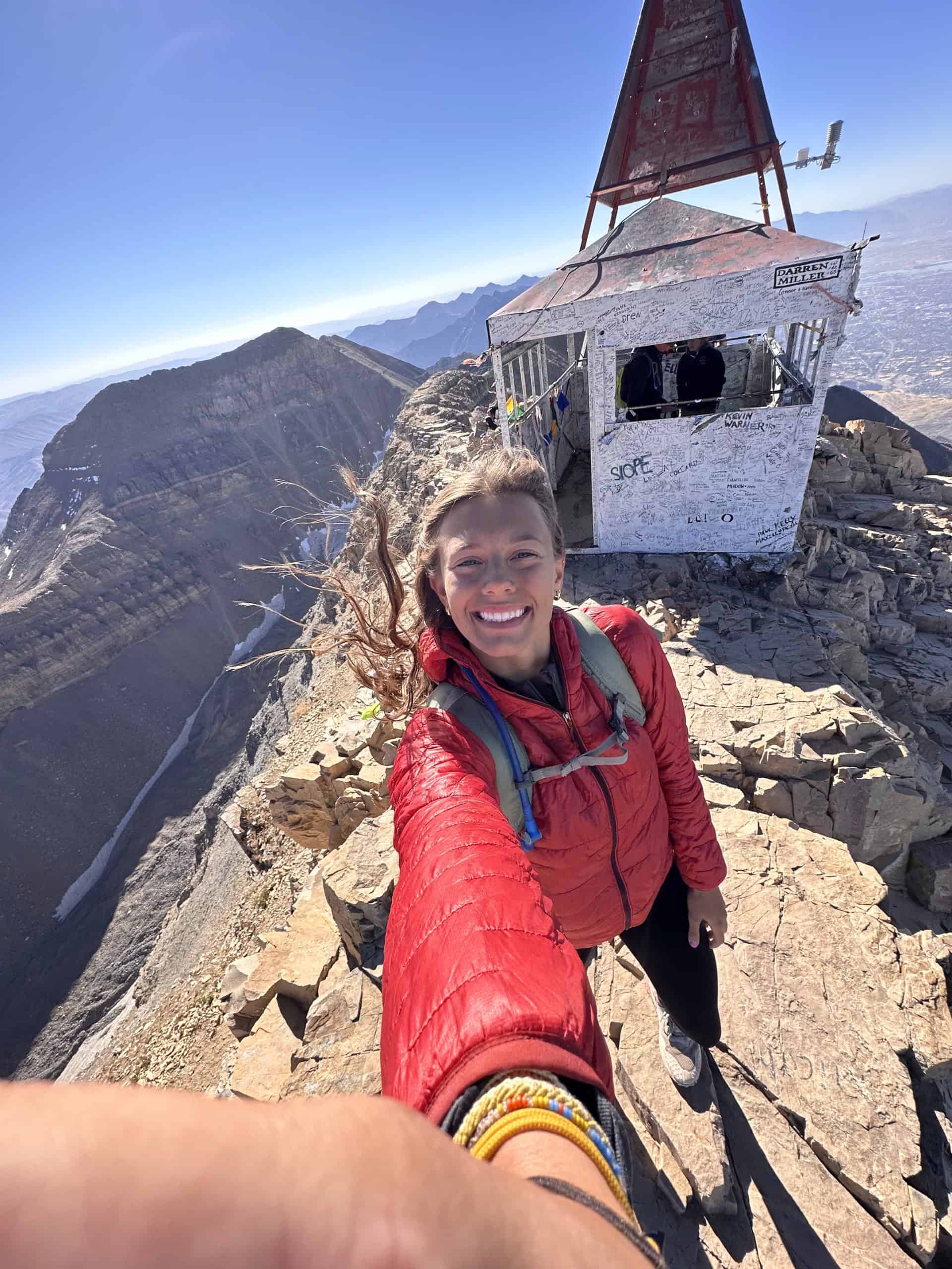 Alex at the top of Timpanogos Peak, the first peak she summitted after her diagnosis. Photo Credit, Alex Perry